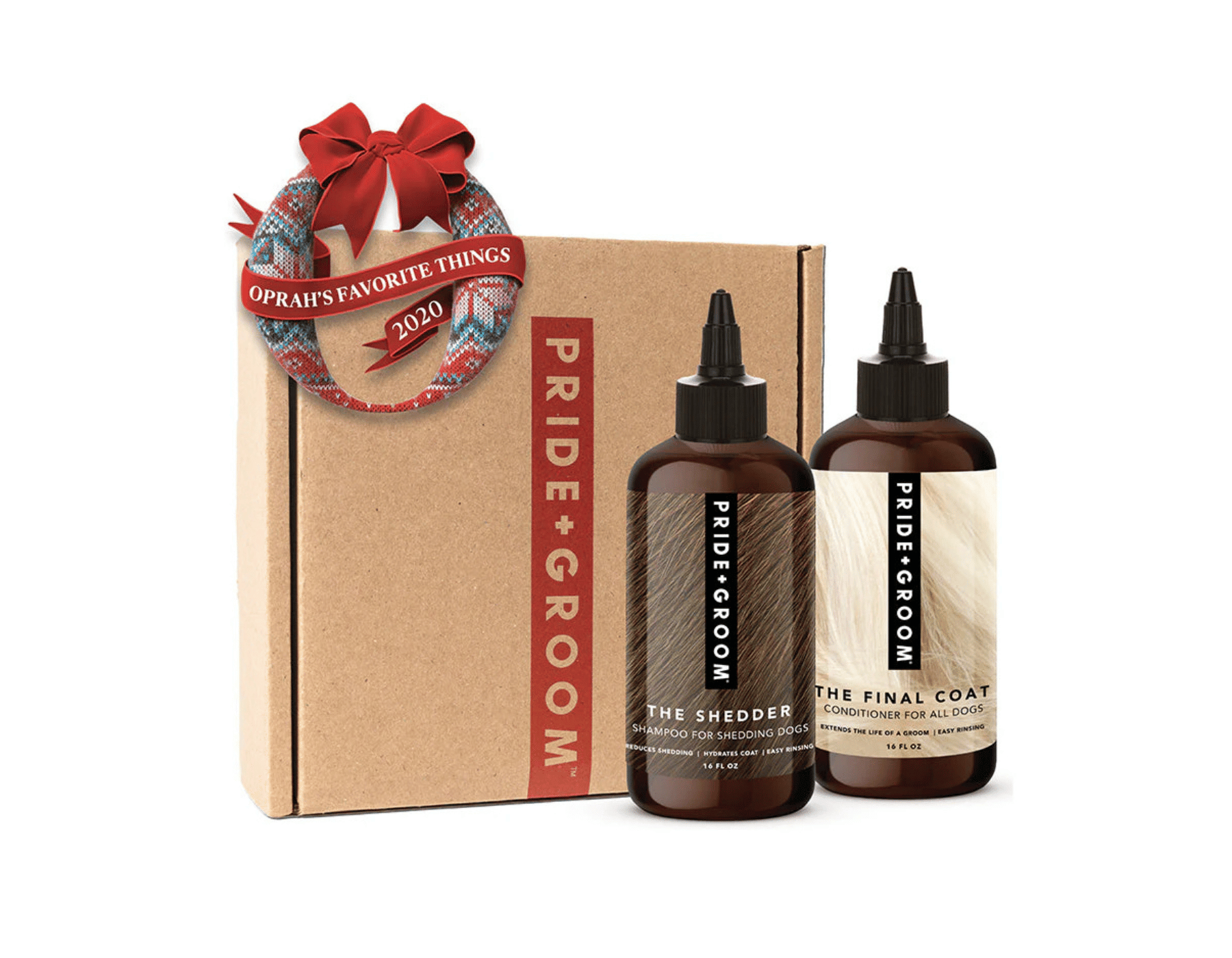 OPRAH'S FAVORITE 2020 at a special price to celebrate making it again this year! 16 ounces each of coat specific PRIDE+GROOM shampoo and THE FINAL COAT conditioner, neatly packed into a crisp kraft box.